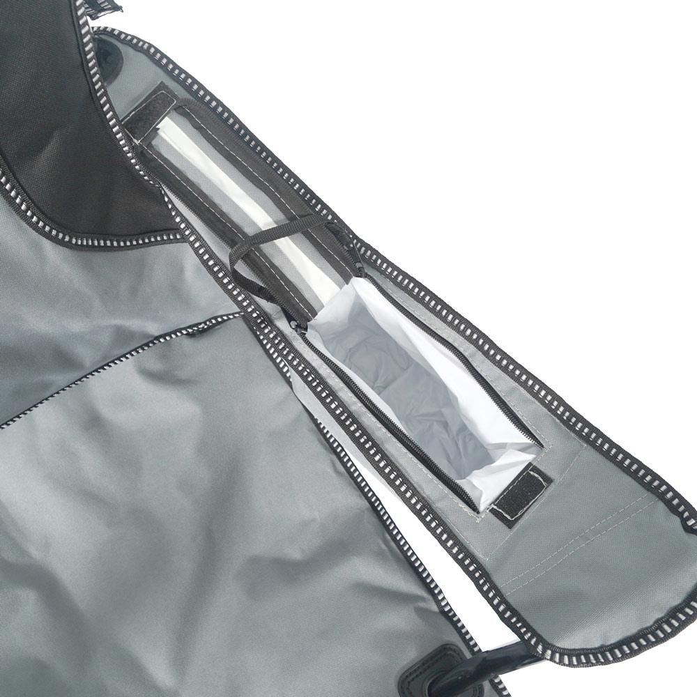 Materiál 100% polyester - dvojitá vrstva odolné polyesterové tkaniky 600D s PE zátěrem, navíc vyztužená bavlněnou podšívkou Nosnost 130 - 150 kg.