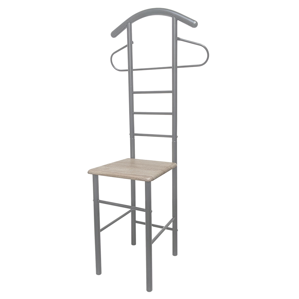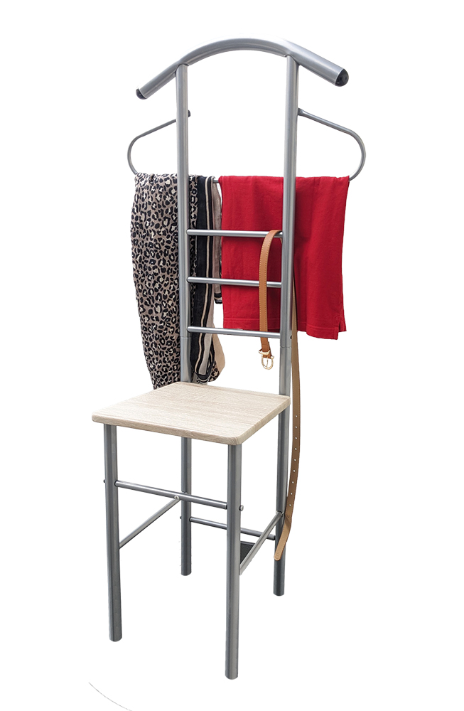 Němý sluha židle je pomocníkem do každé ložnice, šatny či předsíně, kde se postará o pořádek. Němý sluha židle umožní pohodlně odložit oblečení, aby se nezmačkalo a zůstalo čisté - košile, trička, kalhoty, kravaty,.... Němý sluha židle je vyroben z oceli v kombinaci se dřevem a díky nadčasovému designu se bude hodit do každého interiéru.