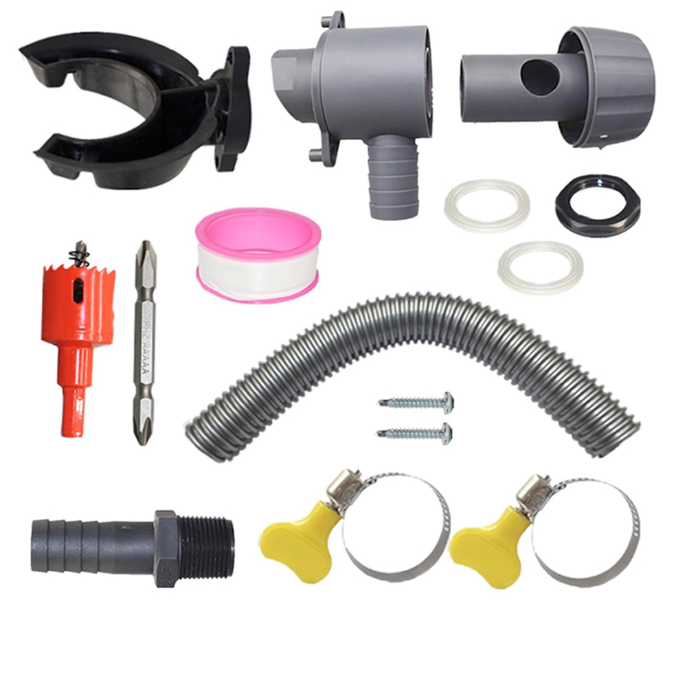 Sada pro snadné propojení sudu:Naše sada pro připojení dešťového sudu k sběrači Maxi Drain obsahuje dvě tvarovky a vrták pro vytvoření otvoru v sudu. Součástí je také 50 cm dlouhá hadice a 2 těsnící podložky, což vám umožní snadné a spolehlivé propojení vašeho sudu. Sud není součástí balení.